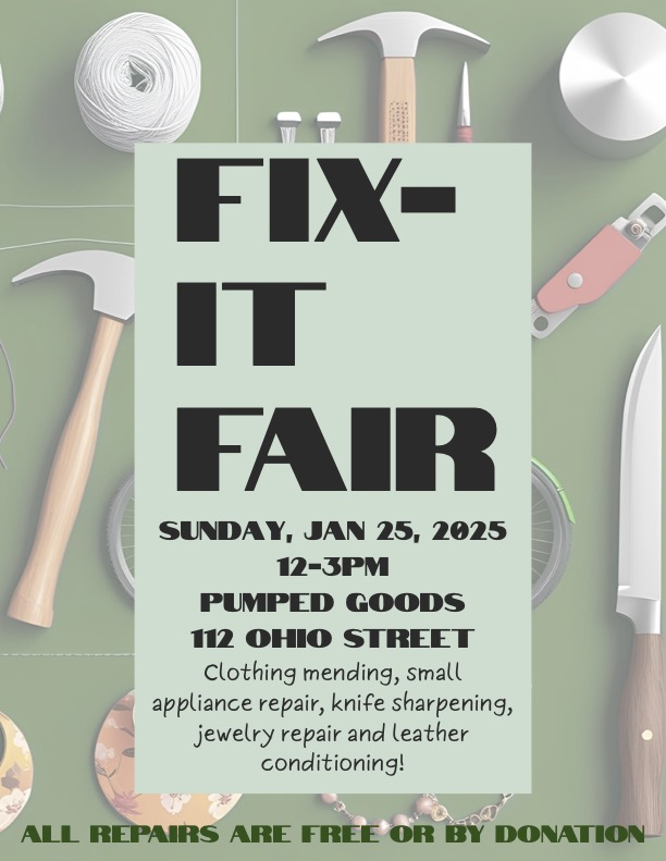 FREE * clothing mending * small appliance repair * knife sharpening * Education * Good VIbes