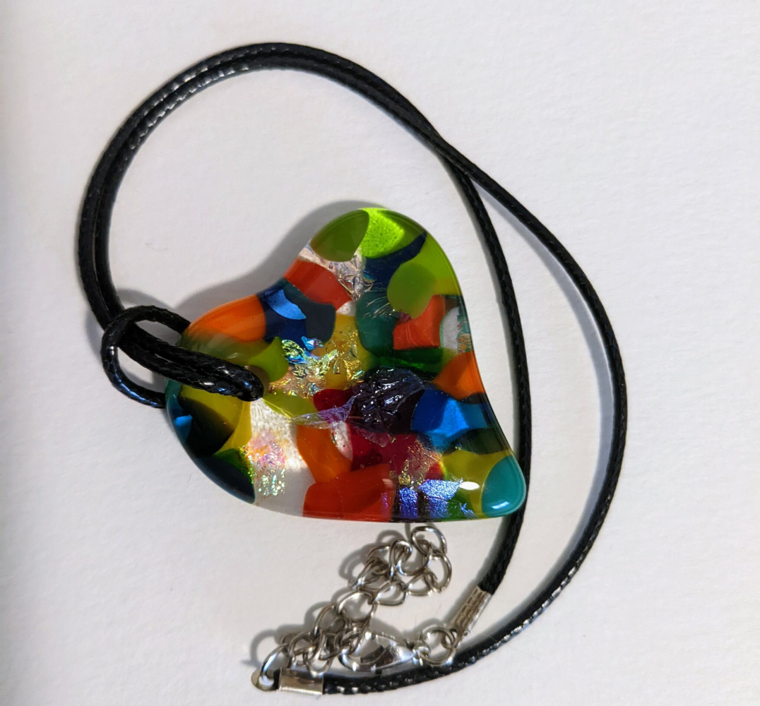 Colorful Fused Glass Heart Pendants